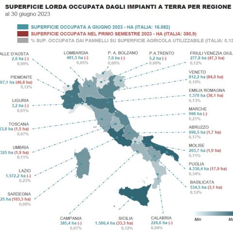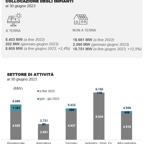 Il 24% della capacità installata nei primi sei mesi dell’anno è nel settore industriale (che comprende le imprese di produzione di energia); il residenziale ha fatto circa metà del totale con oltre 1 GW, mentre il 22% della potenza connessa è nel terziario e il 4% nel settore agricolo.